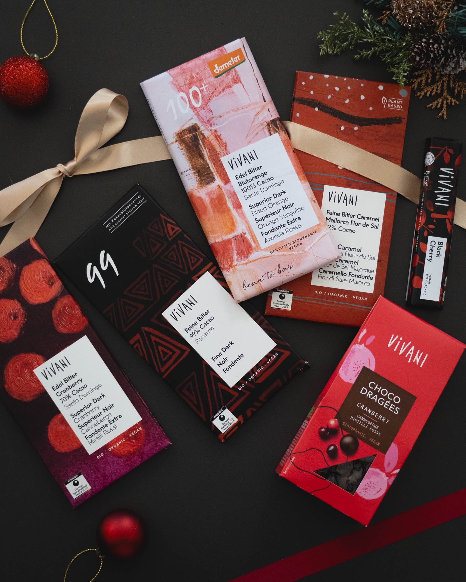 更に、ぜひ一度は試してほしい、ブラッドオレンジの香りがするデメター100%チョコレート、99%チョコレート、キャラメル マヨルカ(塩)チョコレートを合わせてこの冬にぴったりのチョコレートをお届けします!
